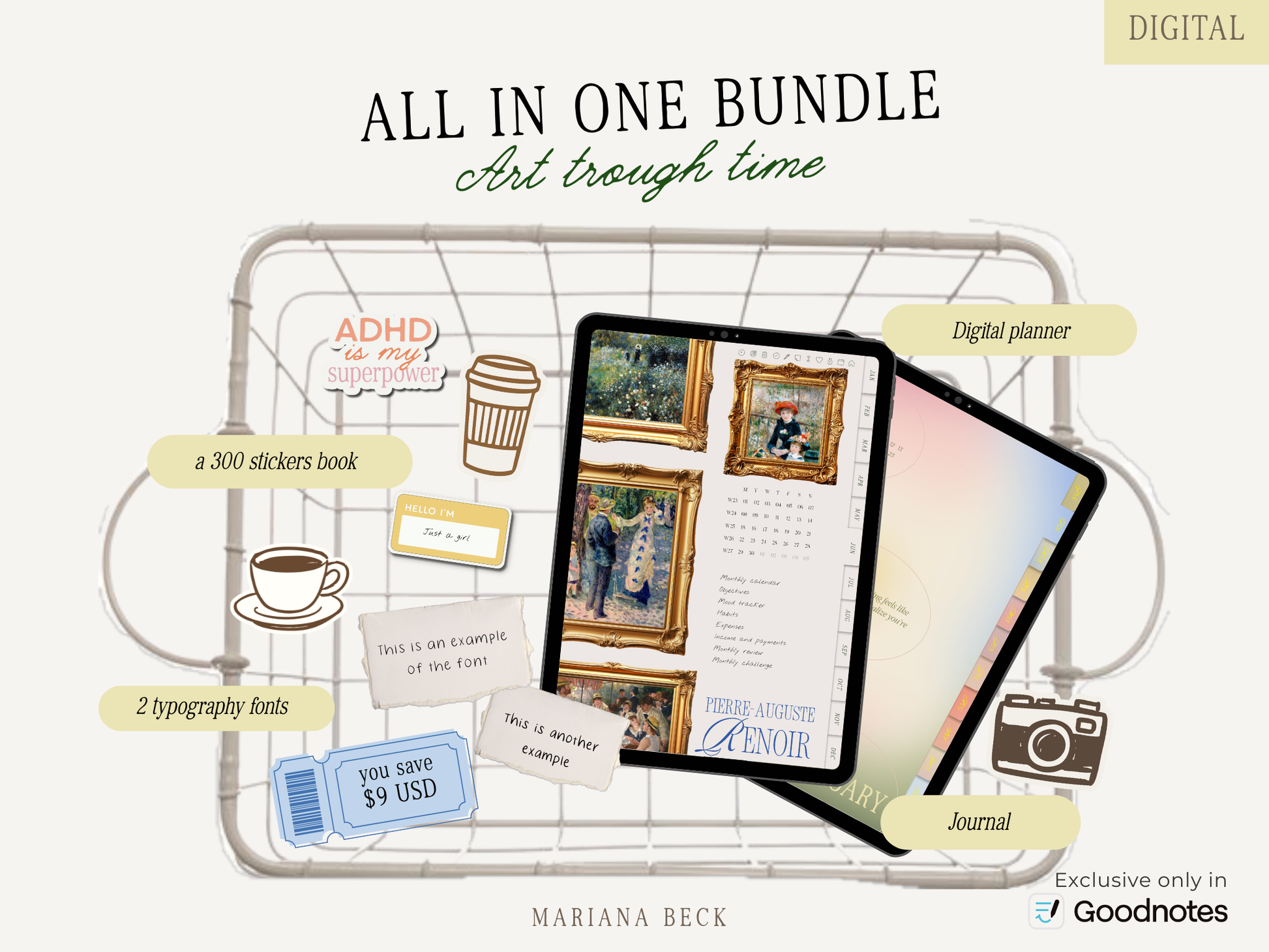 Digital planner + journal + stickers + fonts